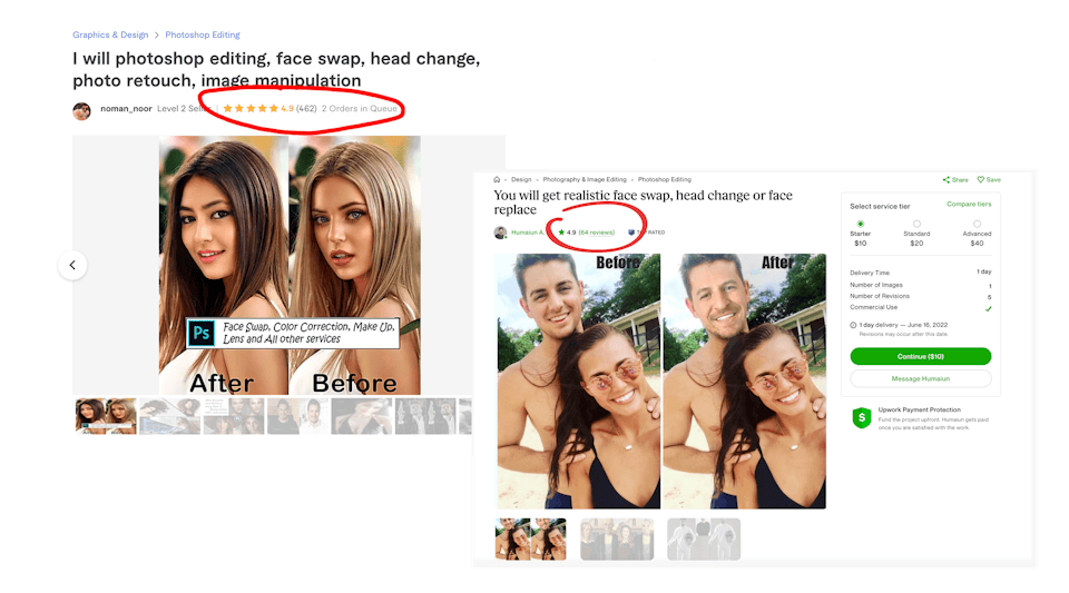 Through Upwork & Fiverr By Providing Speedy Face Swap Services Normally Done With Photoshop & Save Hours of Photo Manipulations & Editing!